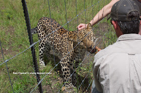 The next morning, our last, we chose not to do the game drive but to relax and pack, and after breakfast we set off to Kwa-Cheetah to experience the cheetah interaction. What a wonderful experience. After a short talk we were off to see and touch a young leopard male (through the fence), and then it was off to the cheetah enclosure where we could get up close and personal. It was amazing to see how relaxed they were around us and how loudly they purred when stroked. Of course everybody had to have a chance to pose with these delightful creatures. Then it was off to see the servals and watch how they chased a toy, and the tour finished off with a visit to four teenage cheetah cubs. All in all, an experience not to be missed.